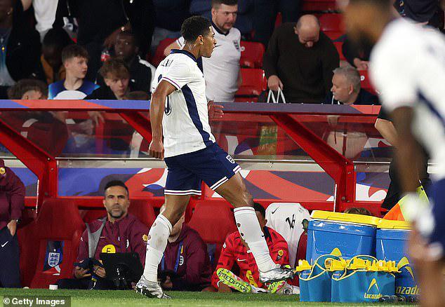 今年六月英格蘭輸給塞內(nèi)加爾后,貝林厄姆被拍到憤怒地踢翻場邊的水瓶冷卻器。